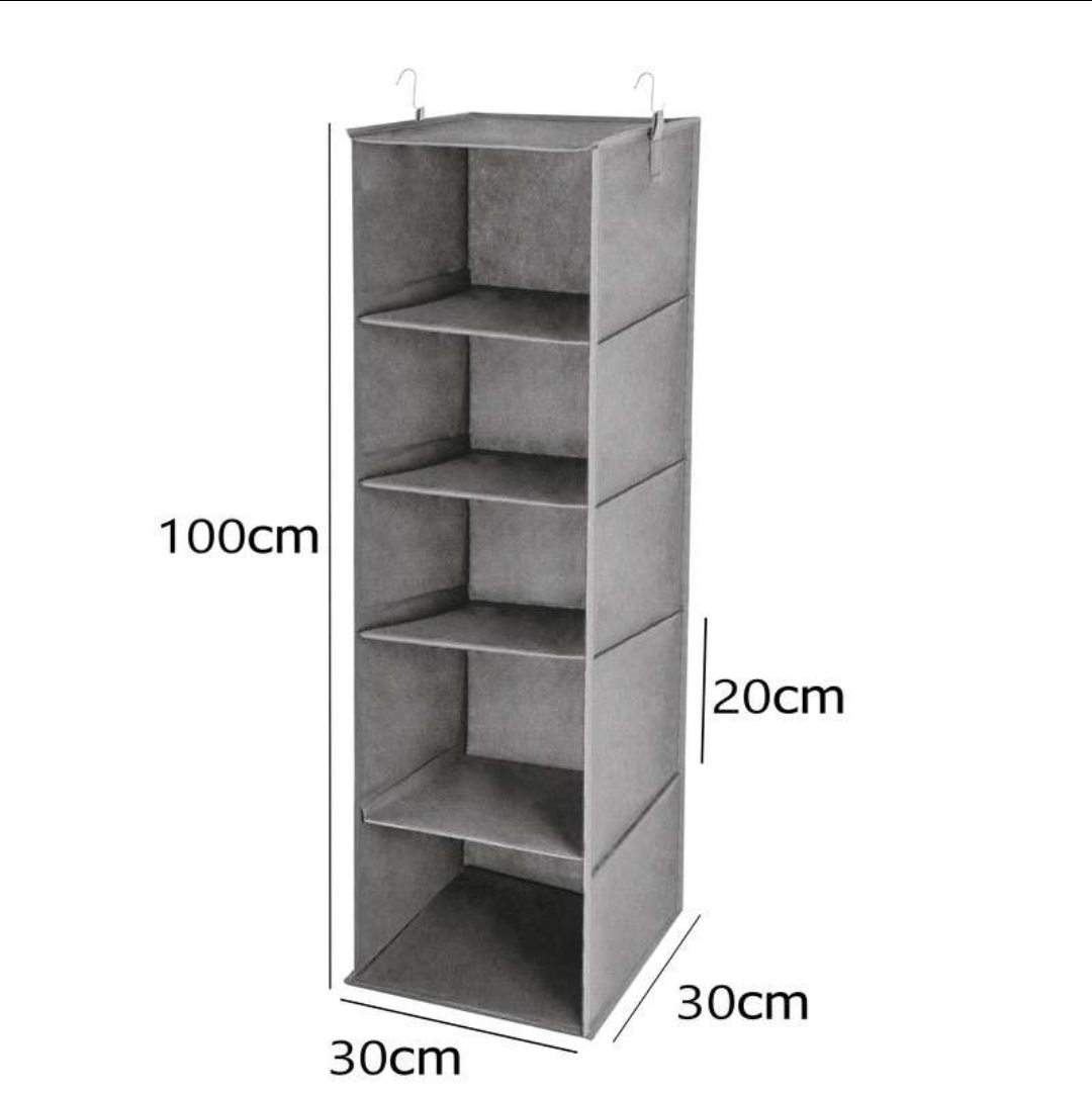 این نظمدهنده پارچهای دارای ۵ طبقه کاربردی است که هر طبقه فضایی به ابعاد ۳۰×۳۰×۲۰ سانتیمتر در اختیار شما قرار میدهد و گزینهای ایدهآل برای استفاده داخل کمد و کمد دیواری محسوب میشود. طراحی استاندارد این محصول امکان مرتبسازی انواع لباس، کیف، کفش، شال، روسری و سایر وسایل را بهسادگی فراهم میکند.